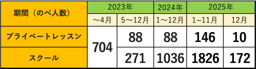 ▼指導人数(プライベートレッスン・スクール合算)